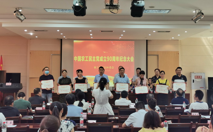 为了纪念中国农工民主党成立90周年,回顾建党90年来的光辉历程,传承农工党优良传统,8月6日,农工党长寿区委会召开中国农工民主党成立90周年纪念大会。农工党长寿区委会主委孔庆明、副主委、区人民政府副区长张昌红、区委会委员、区政协副主席李彬旭及部分党员代表参加了会议。中共长寿区委常委、统战部部长何以龙、区委常委、组织部部长胡建川、区人大常委会党组成员、副主任李吉华、民革区委会主委、区政协副主席王永全、民进区委会主委、区人大常委会副主任霍家勤、九三学社区委会副主委陶颖及统战部、友好单位等部门领导应邀出席了纪念大会。